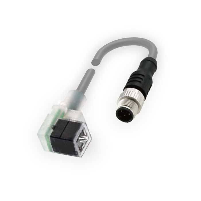 阀门插头类型A,DIN,18mm,4Pin转M12直型公头、双端预铸PVC非柔性电缆、灰色护套、6VA083-L1/L2
