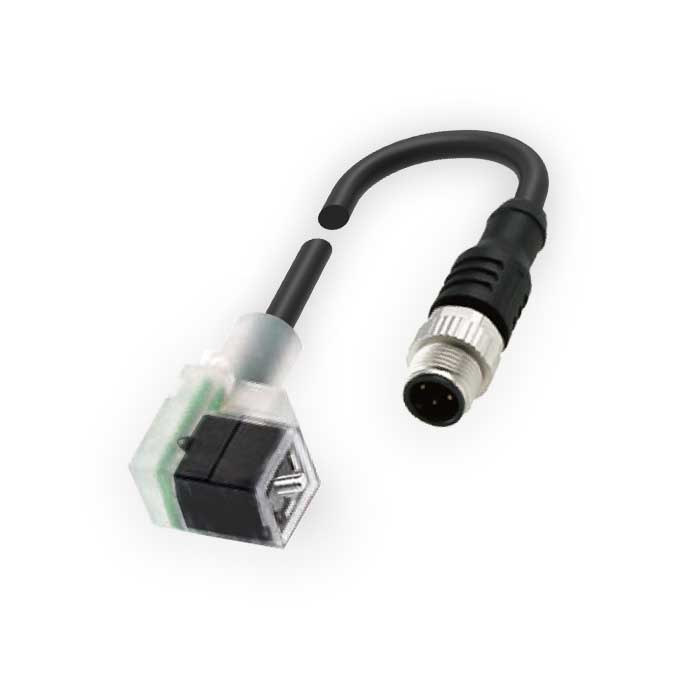Valve plug type B, DIN, 10mm, 3Pin to M12 male straight, dua